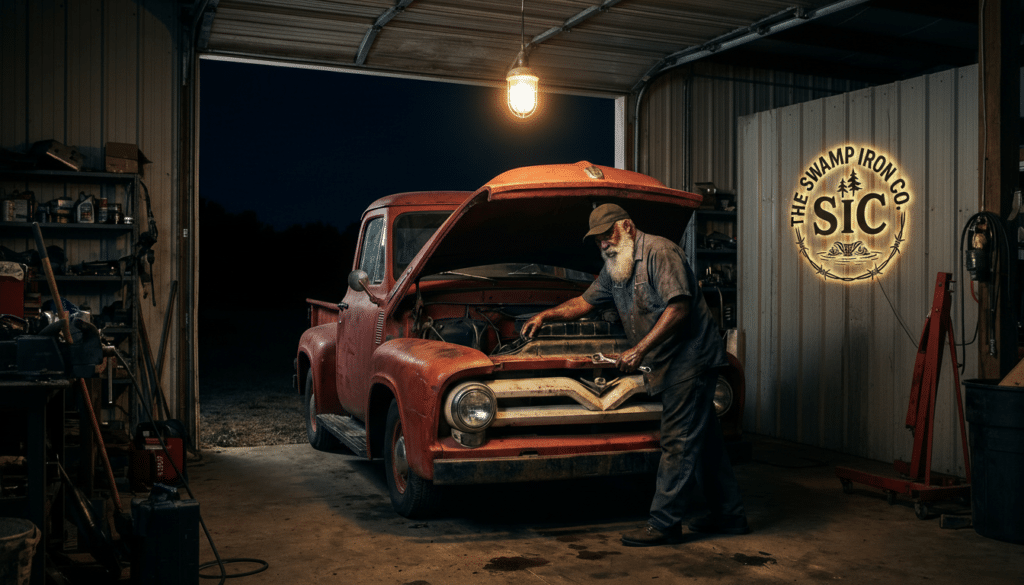 Our name fuses the raw, untamed power of America’s wild places — swamps, frontiers, ranges, timberlands, and backcountry — with the unyielding toughness of iron. “Swamp” evokes the muddy, unforgiving landscapes where true character is tested and proven. “Iron” represents the enduring strength, resilience, and craftsmanship of those who work with their hands to shape this country.